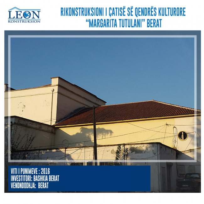 Rikonstruksioni i catise se Qendres Kulturore “Margarita Tutulani” Berat RestaurimeBy leonJuly 29, 2016Margarita Tutulani