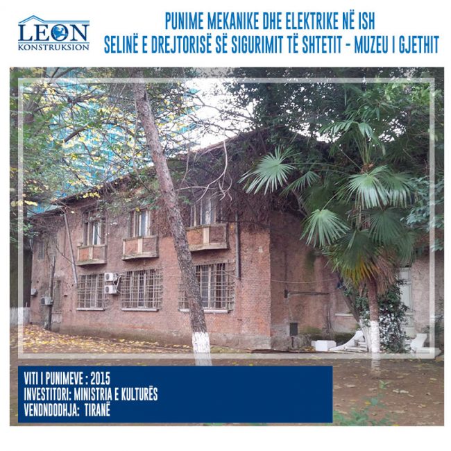 Punime mekanike dhe elektrike ne ish seline e Drejtorise se Sigurimit te Shtetit -Muzeu i Gjethit RestaurimeBy leonJune 27, 2016Muzeu i Gjethit