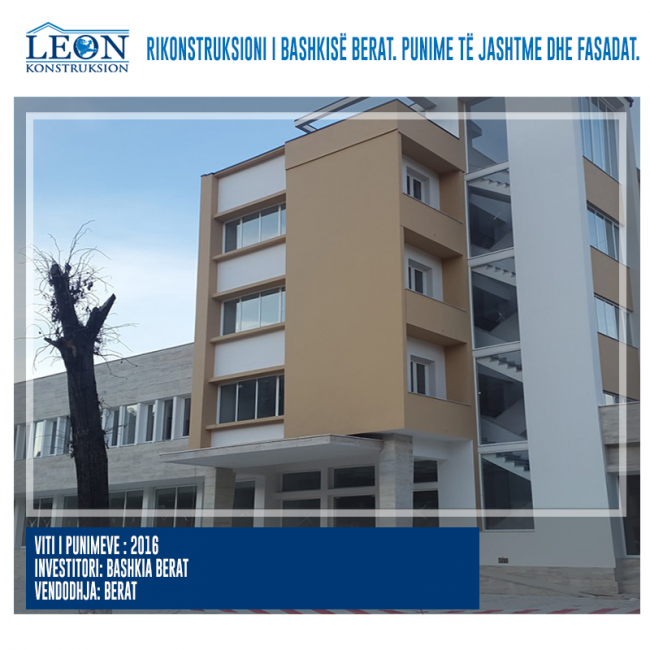 Rikonstruksioni i Bashkise Berat. Punime te jashtme dhe fasadat NdertimeBy leonApril 10, 2016Punime te jashtme dhe fasadat